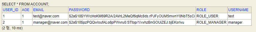 현재 테스트를 위해 회원가입을 각 권한에 맞게 시켜보았습니다.