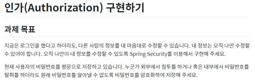 - 과제 1 : 자신의 정보를 타인이 수정할 수 없도록 Spring Security를 이용하여 구현하기