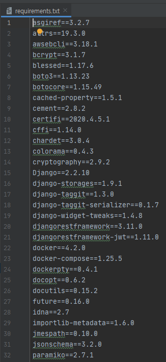 이름은 꼭 requirements.txt로 할 필요는 없는데, 대부분 프로젝트에서 requirements.txt라는 이름으로 관리하고 있으니 웬만하면 맞춰주는 것이 좋습니다.