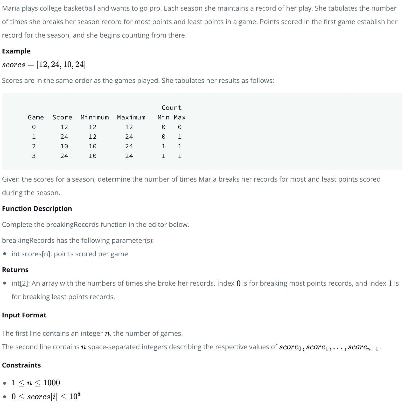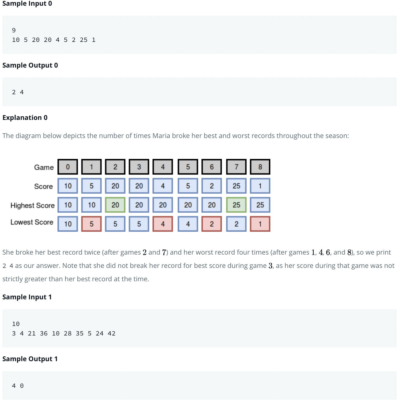 문제 링크 : https://www.hackerrank.com/challenges/breaking-best-and-worst-records/problem