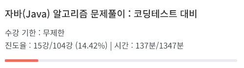 문자열 파트 강의를 수강하며 약 15%정도의 진도를 진행하였다. 5일차에 15강 수강을 했는데, 하루 평균 2강의~3강의 정도 들었다고 보면 될 것 같다.