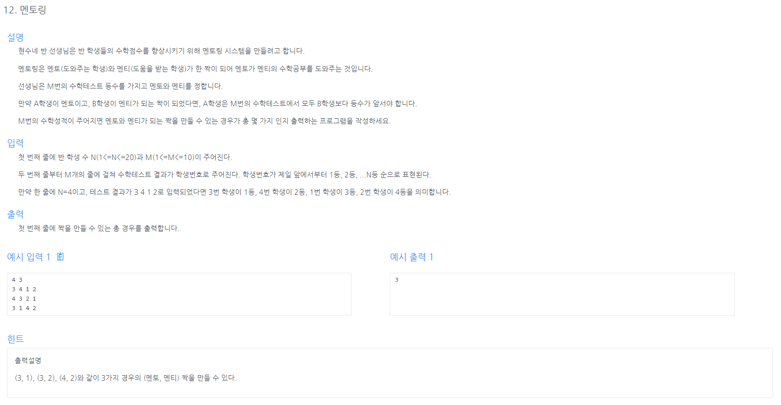 이 문제도 풀지 못했다.. 3차원 배열까지밖에 생각하지 못했기 때문이다.. 이건 4차원 배열 문제이다.