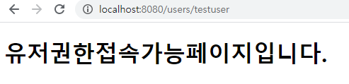- 유저 계정으로 접속을 하게되면, 유저페이지url에는 접속이 가능하지만, users/testadmin페이지에는 접속이 불가능한 것을 볼 수 있습니다.