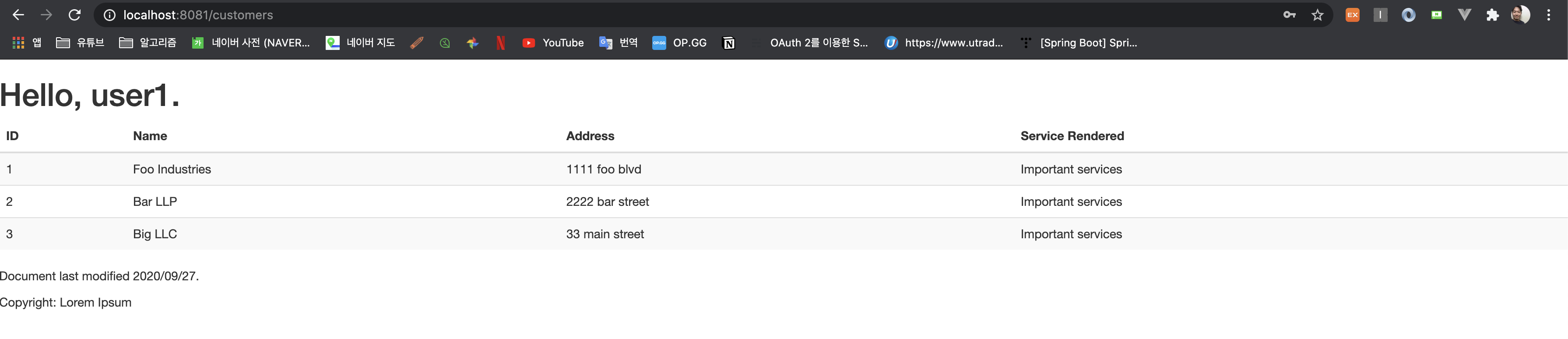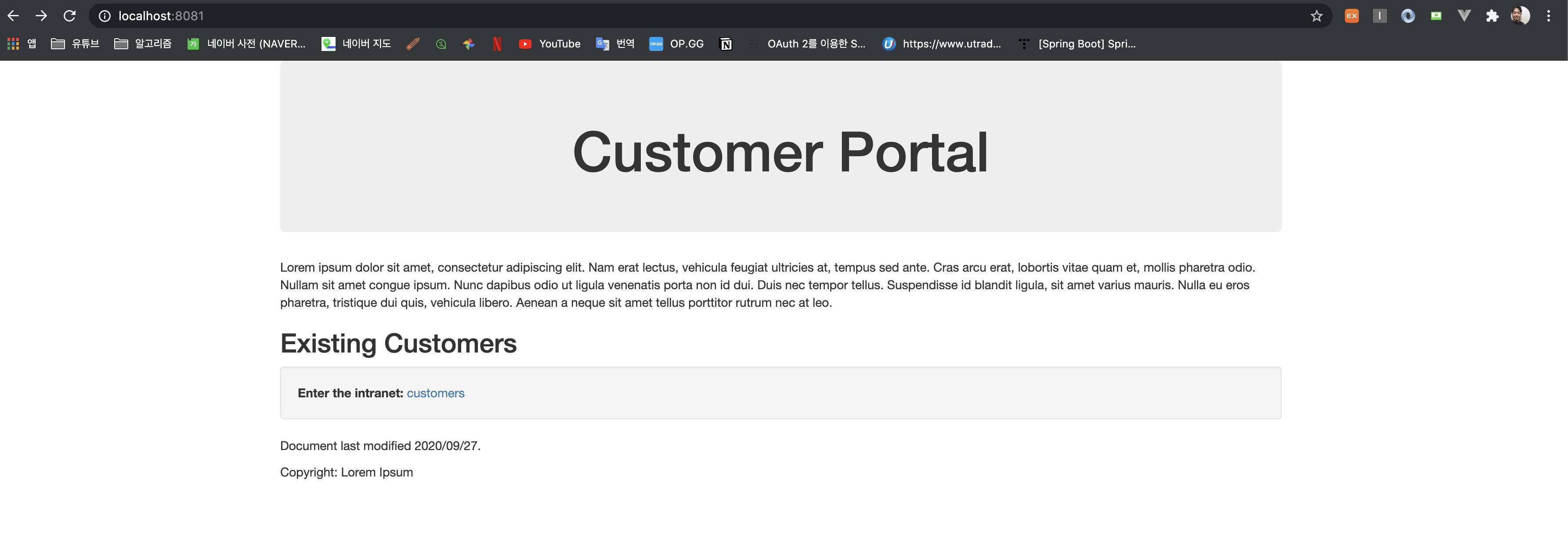 customers.html - 내부 접근 페이지로서, user Role 권한이 부여된 인증된 사용자만이 제한적 접근이 가능하다.