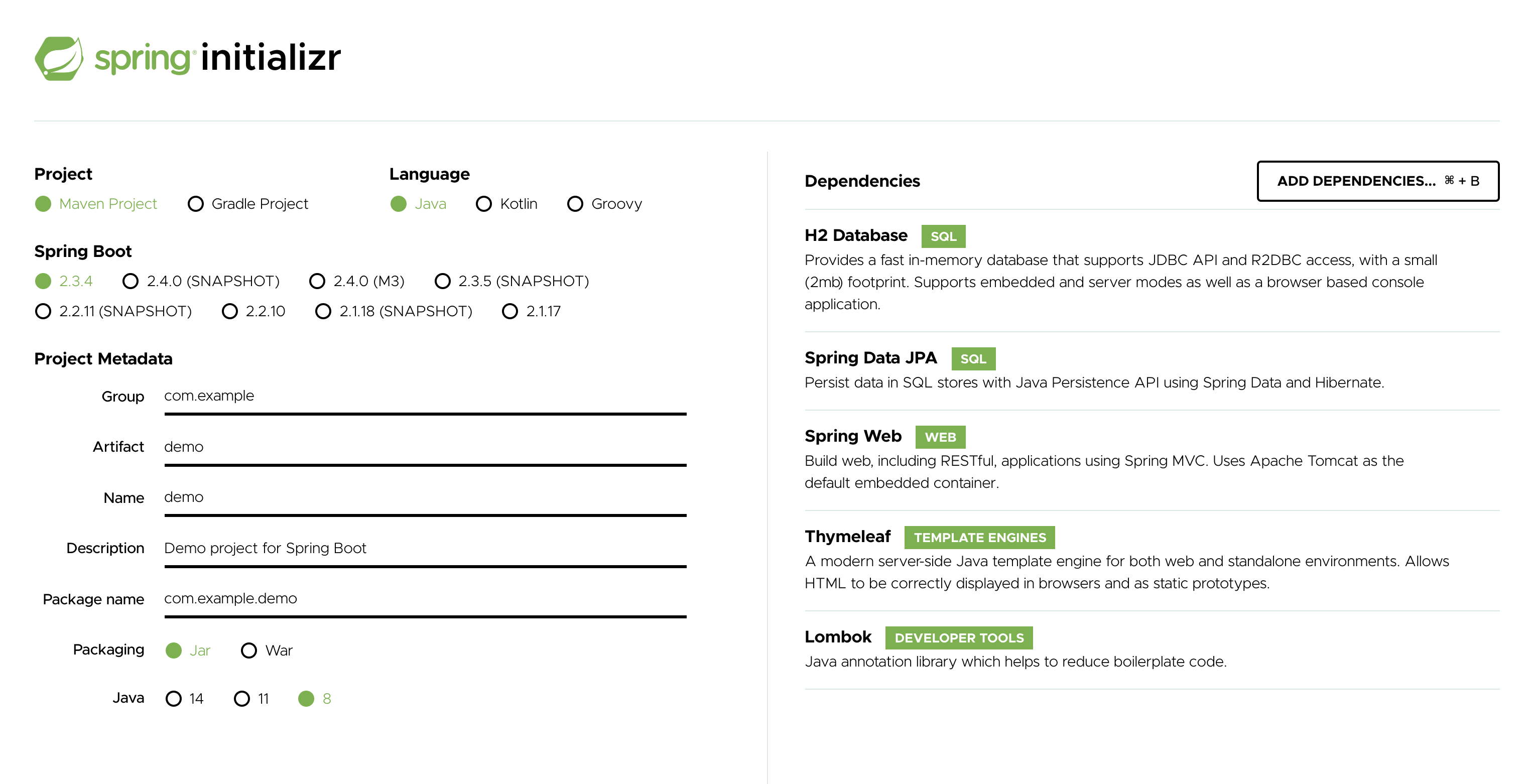 프로젝트는 start.spring.io/ 에서만들어봅시다.