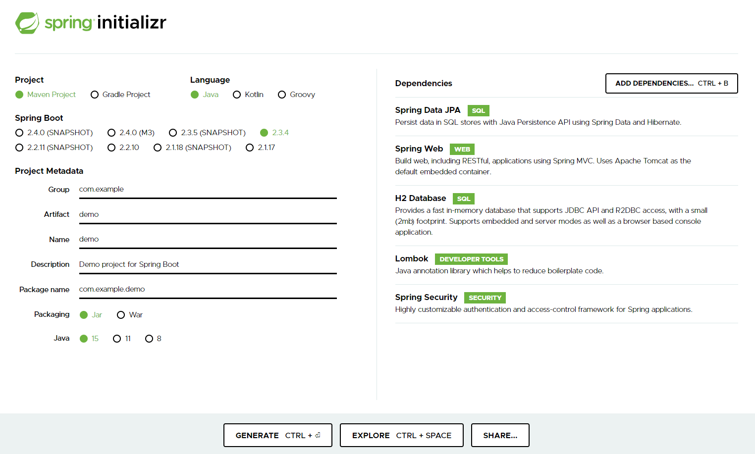 하단의 Generate를 클릭하여 프로젝트를 적당한 위치에 다운로드 받아줍니다.