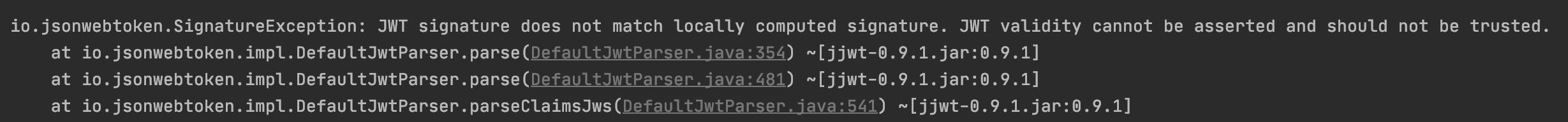 - 반면 jwt 토큰을 임의로 수정하여 다시 요청해보겠습니다.
